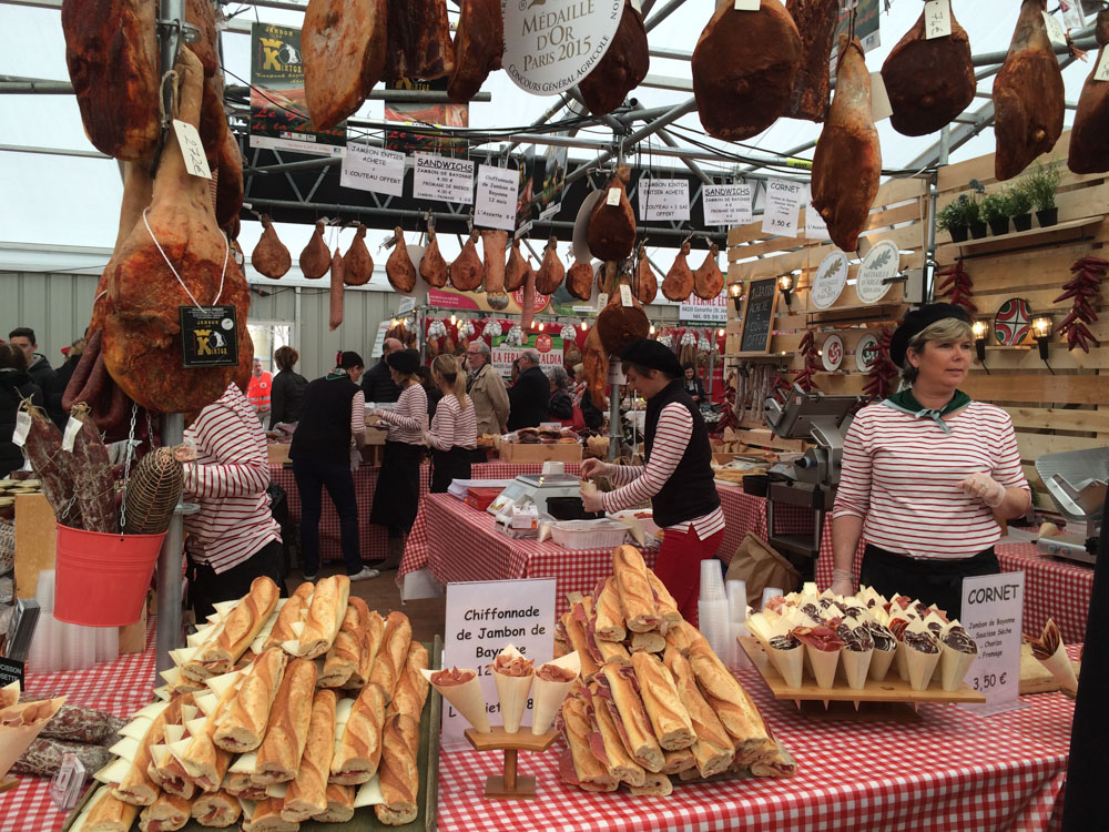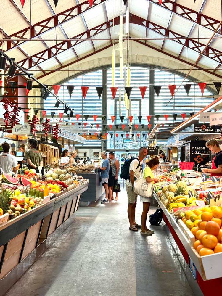 Marché emblématique de Bayonne, idéal pour déguster le jambon de Bayonne, le gâteau basque, les fromages artisanaux et les vins régionaux dans une ambiance authentique et gourmande.